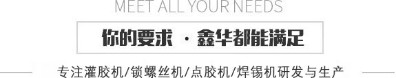 鑫華首頁(yè)  |  灌膠機(jī)系列  |  鎖螺絲機(jī)系列  |  點(diǎn)膠機(jī)系列  |  鑫華產(chǎn)品中心  |  視頻中心  |  新聞資訊  |  關(guān)于鑫華  |  聯(lián)系鑫華